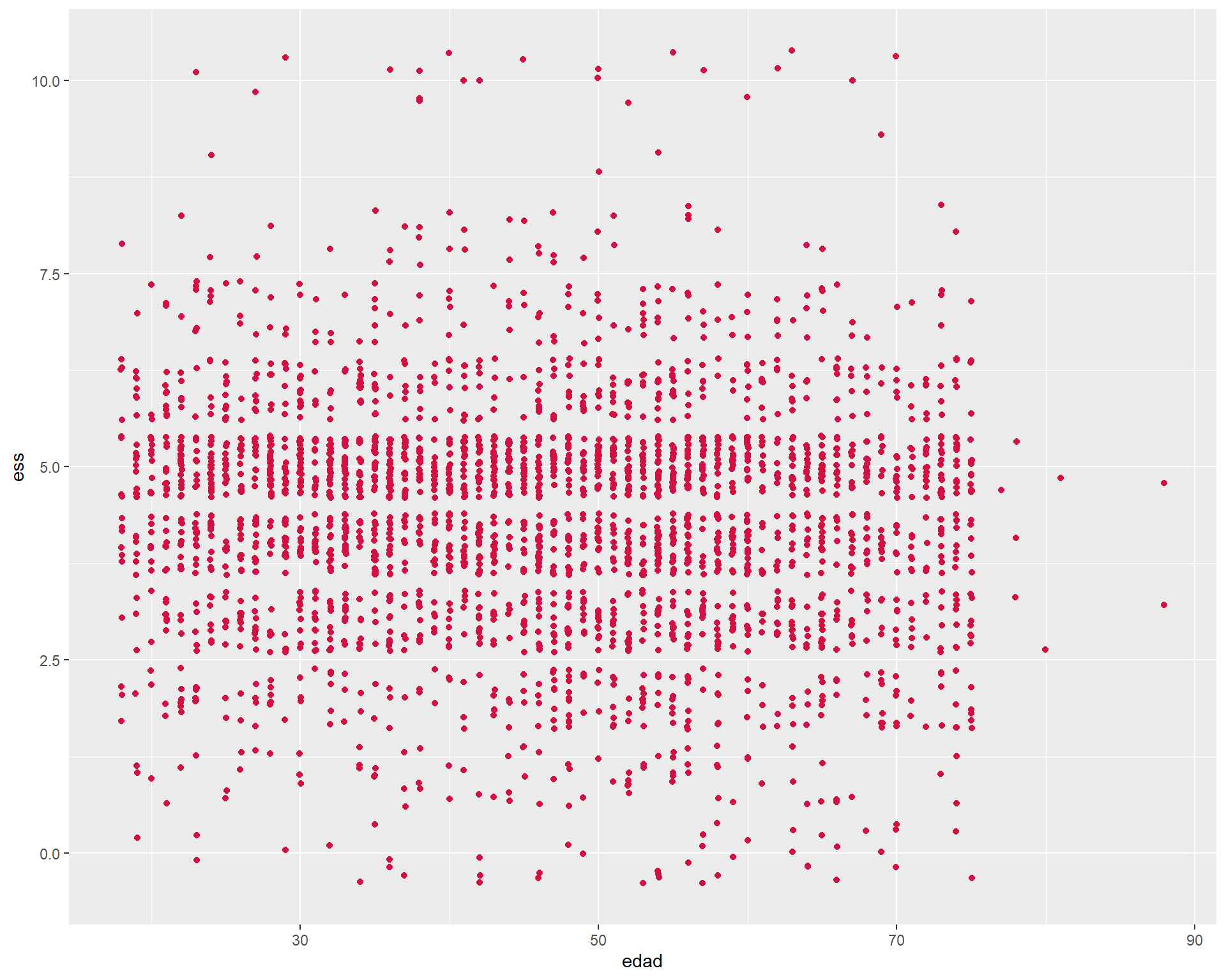 sjPlot::plot_scatter(proc_elsoc, edad, ess)