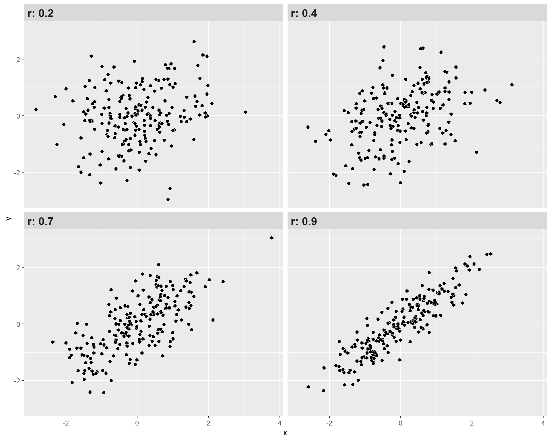 Ahora conocemos el valor del coeficiente mediante al argumento rho, que es igual a 0.7, siendo positivo y grande según los criterios de Cohen (1988).