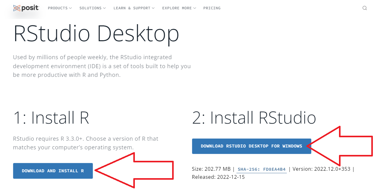• Acceder a la página de posit, desarrollador del software desde octubre de 2022. Link directo a la descarga acá.