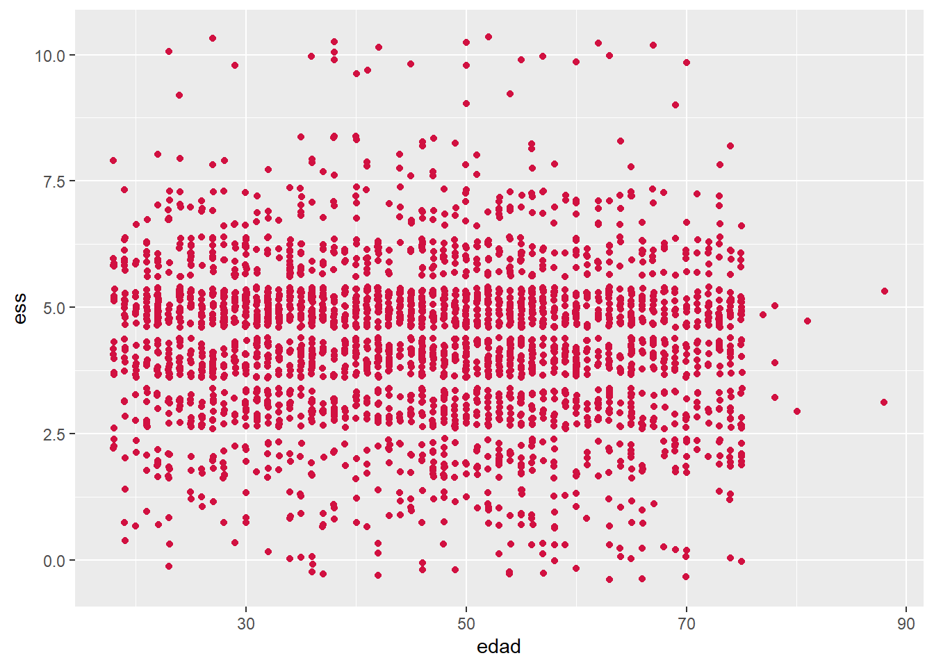 sjPlot::plot_scatter(proc_elsoc, edad, ess)