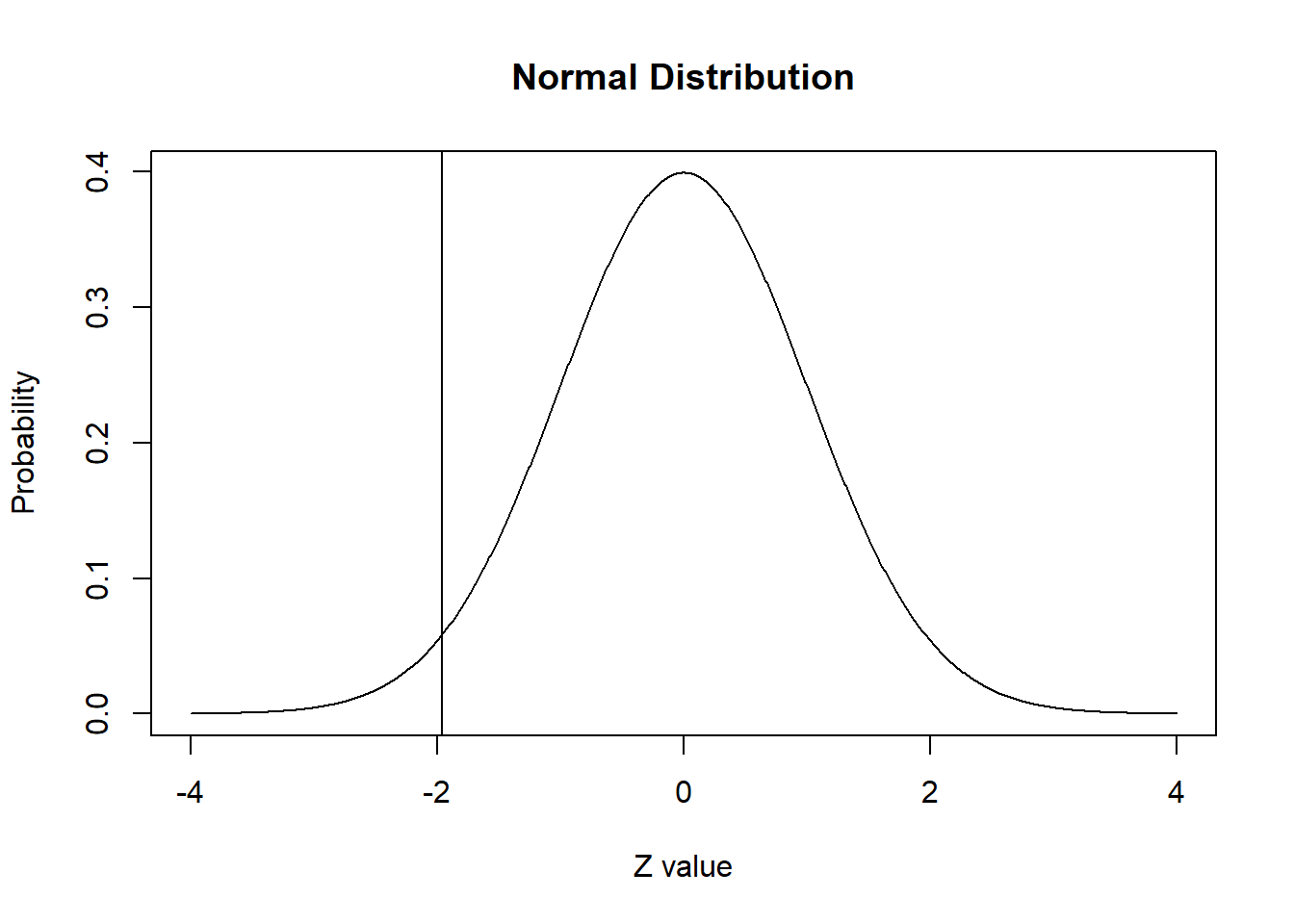 La respuesta nos dice lo que ya sabemos: el 97,5% de la distribución normal ocurre por debajo del valor z de 1,96.